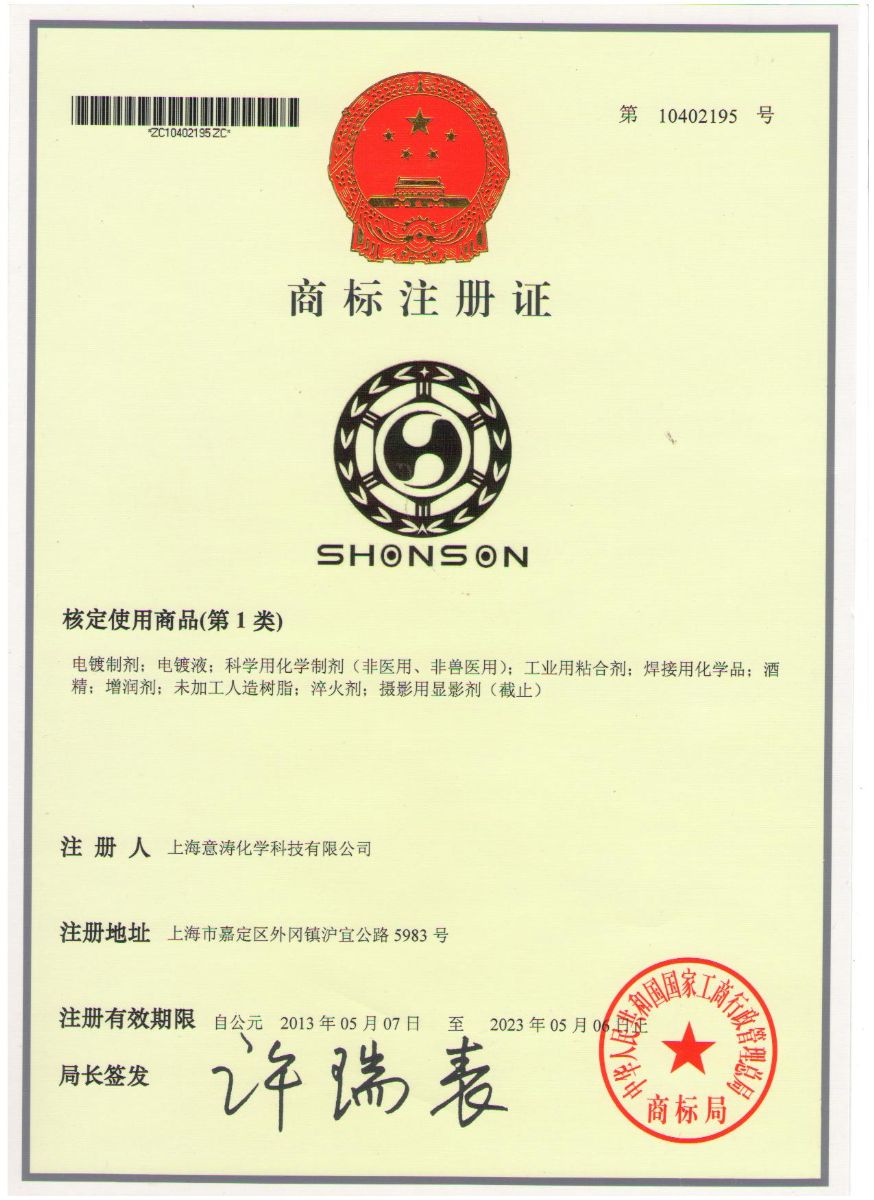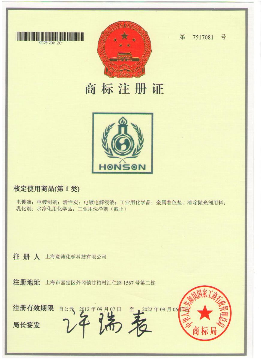 商标HONSON已通过第7517081号,SHONSON已通过第10402231号和第10402195号。以上商标所有权规本公司所有。